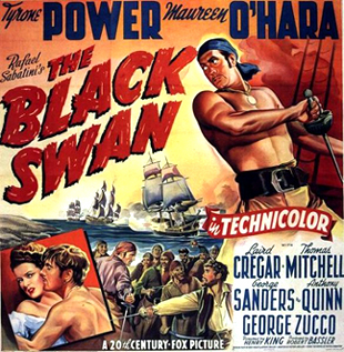 | The basic approach to movie swashbucklers was set by Douglas Fairbanks, Sr. in his series of silent big budget action films of the Twenties: respectful, reasonably historically accurate, but with an overall sense of fun. Warner Bros stuck with this approach in the series of Thirties films it did with Errol Flynn, as did most of the other studios attempting swashbucklers over the next two decades. 20th Century-Fox chose to deviate from this approach with three of its swashbucklers: "The Mark of Zorro" (1940), "The Black Swan" (1942), and "Prince Valiant" (1954), taking a far more tongue-in-cheek approach without descending into parody of the "Princess And The Pirate" (1944) or "Abbott and Costello Meet Captain Kidd" (1952) variety. |